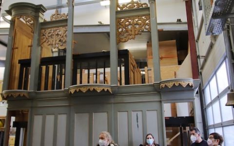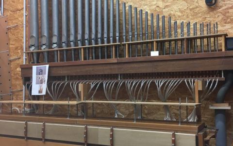 In zwei Fuhren brachte ein LKW verschiedene Teile des Gehäuses, Windladen, Motor, den rekonstruierten Spieltisch und vieles mehr. Beim Ausladen packten nicht nu…